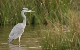 The grey heron is known for its motionless stance at the water's edge