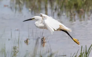 The little egret is a small, white bird that feeds on small fish and crustaceans